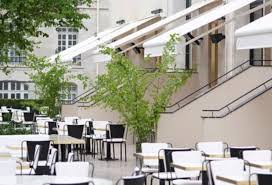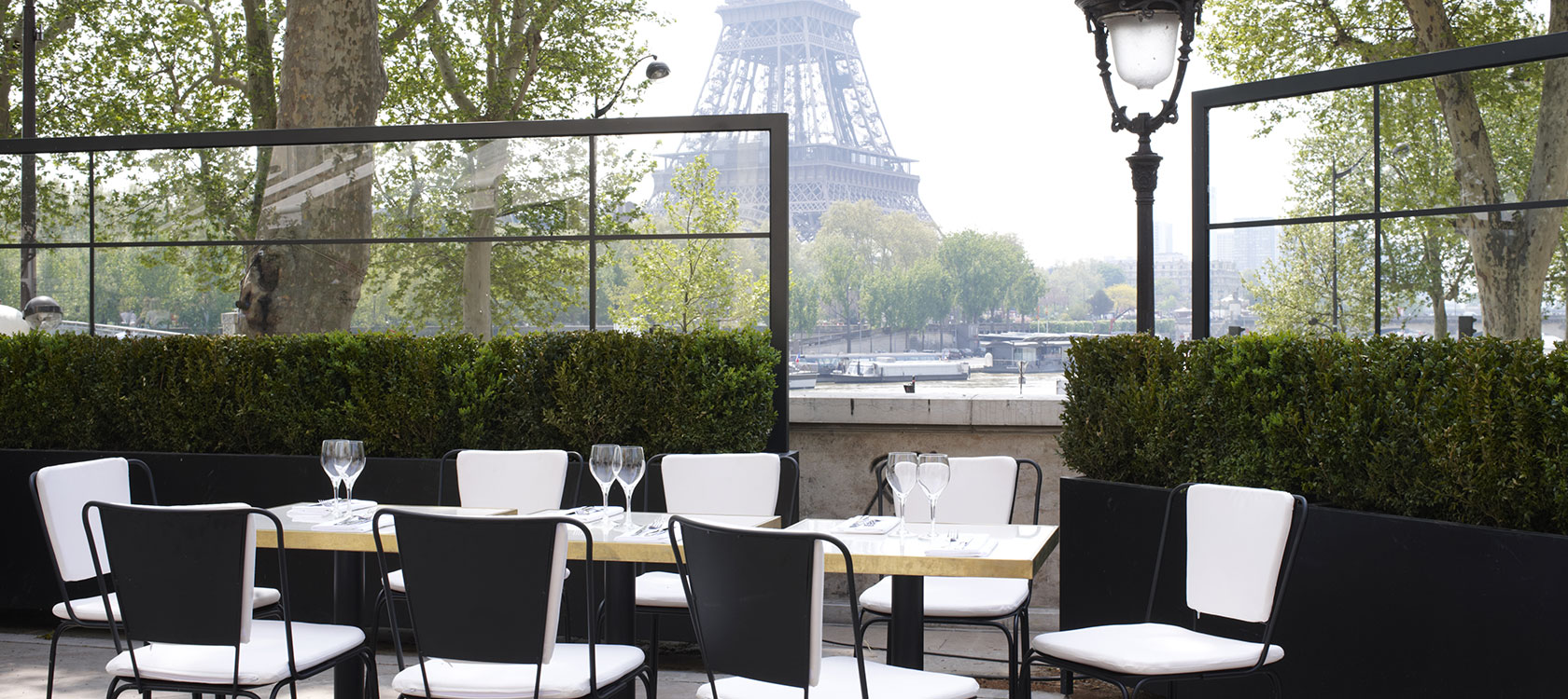 Het terras in de zomer is erg gezellig, met uitzicht op de Eiffeltoren.