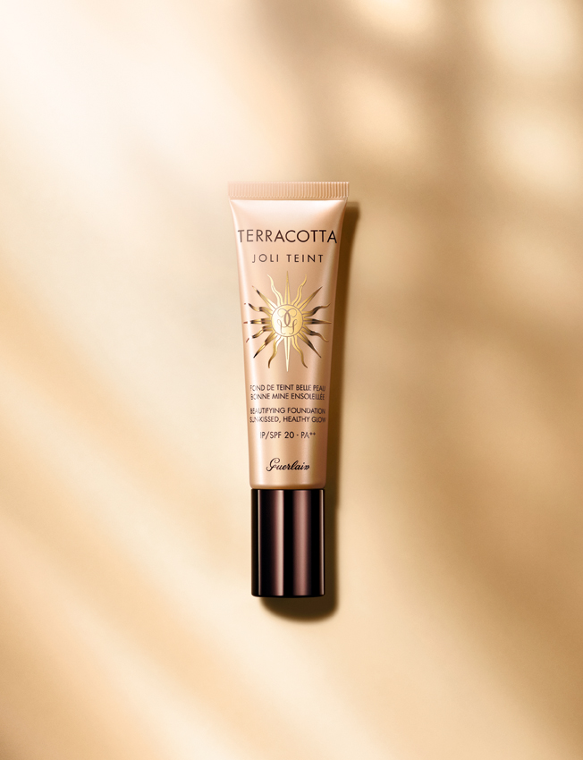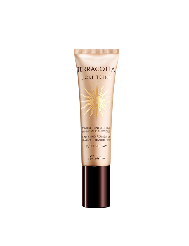 Sinds een week of drie kan ik niet meer zonder de Terracotta Joli Teint van Guerlain. Aangezien hij pas volgende week in de winkels ligt wilde ik er niet eerder over bloggen. Maar wat ben ik fan geworden van deze foundation in een tube met handig pompje. Hij geeft me een instant zomer gevoel. Daar draagt het nieuwe logo met het zonnetje ook zeker aan bij.