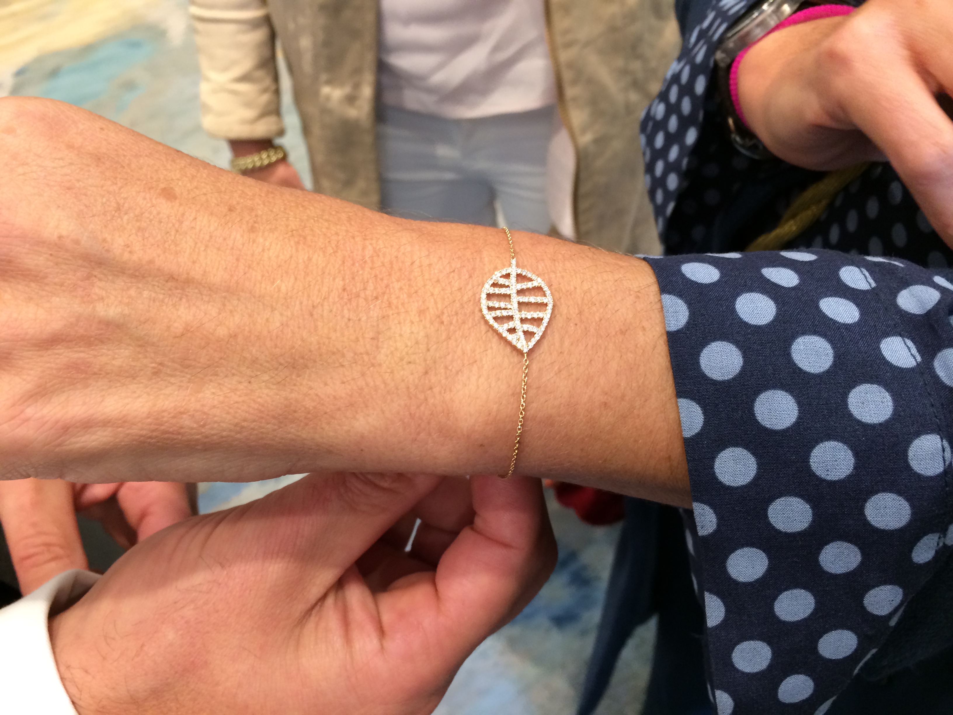 De altijd sympathieke en elegante Margarita bleef naar mijn idee heel relaxt onder alle aandacht die zij die middag kreeg. Met iedereen maakte zij een praatje en legde zij geduldig uit hoe zij aan haar inspiratie uit de natuur was gekomen. Zelf droeg ze alleen de LEAVES oorbellen en een heel klein LEAVES schuifspeldje in haar haar. Less is more.