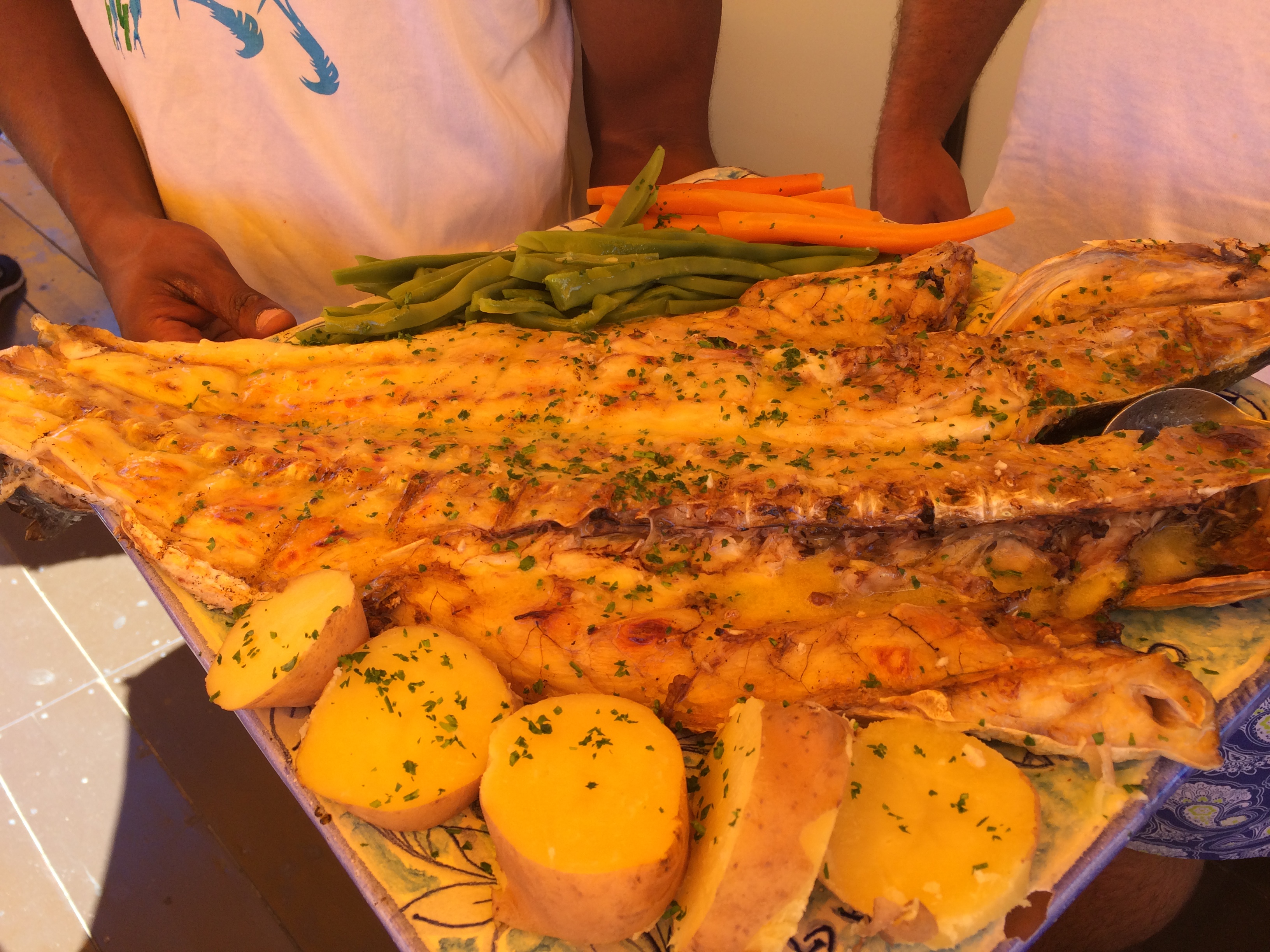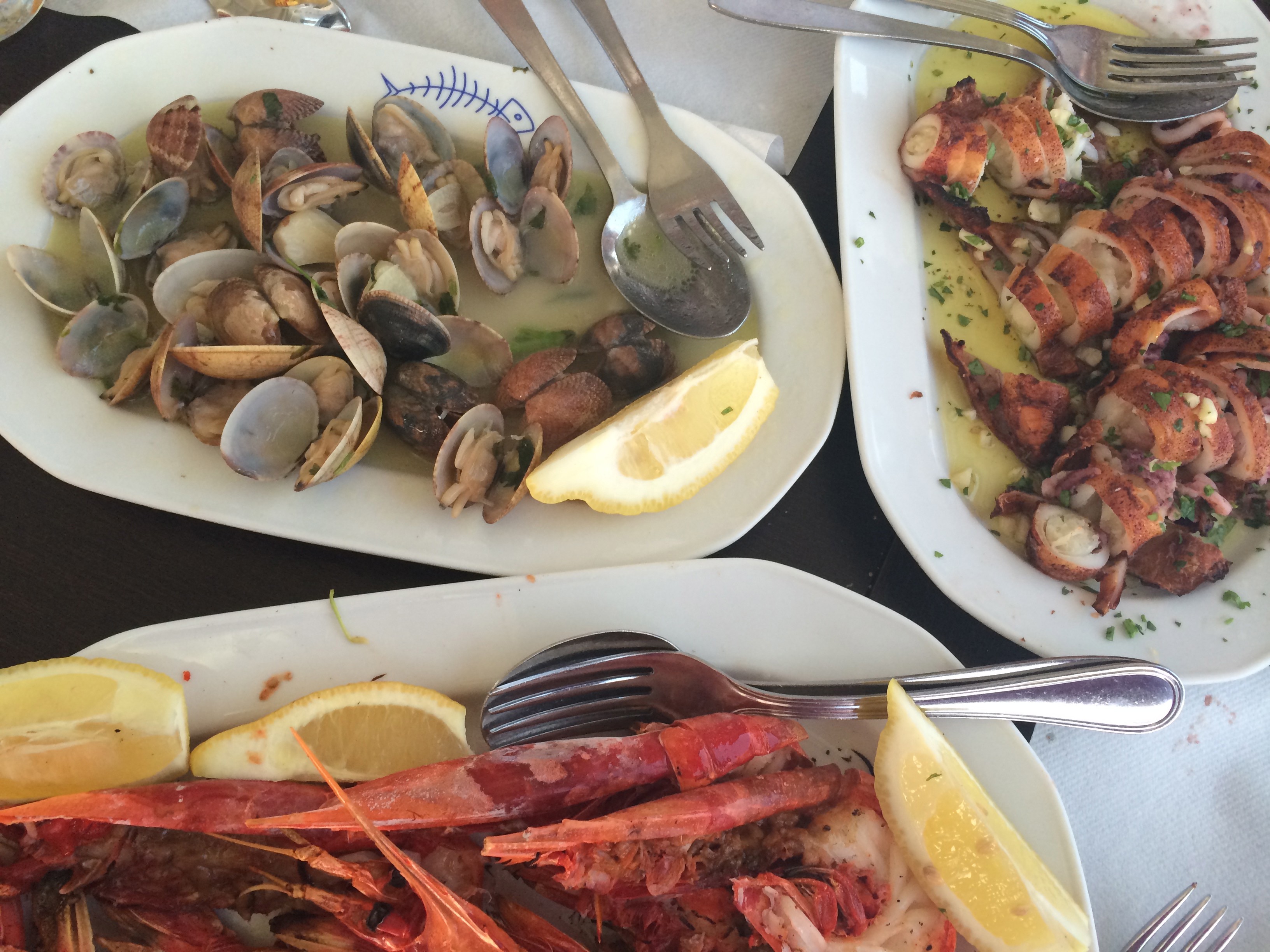 Hierboven de gerechten van GIGI’s. De vissen die je geserveerd krijgt krijgen allemaal een knoflook/boter sausje erbij. Om je vingers bij af te likken.