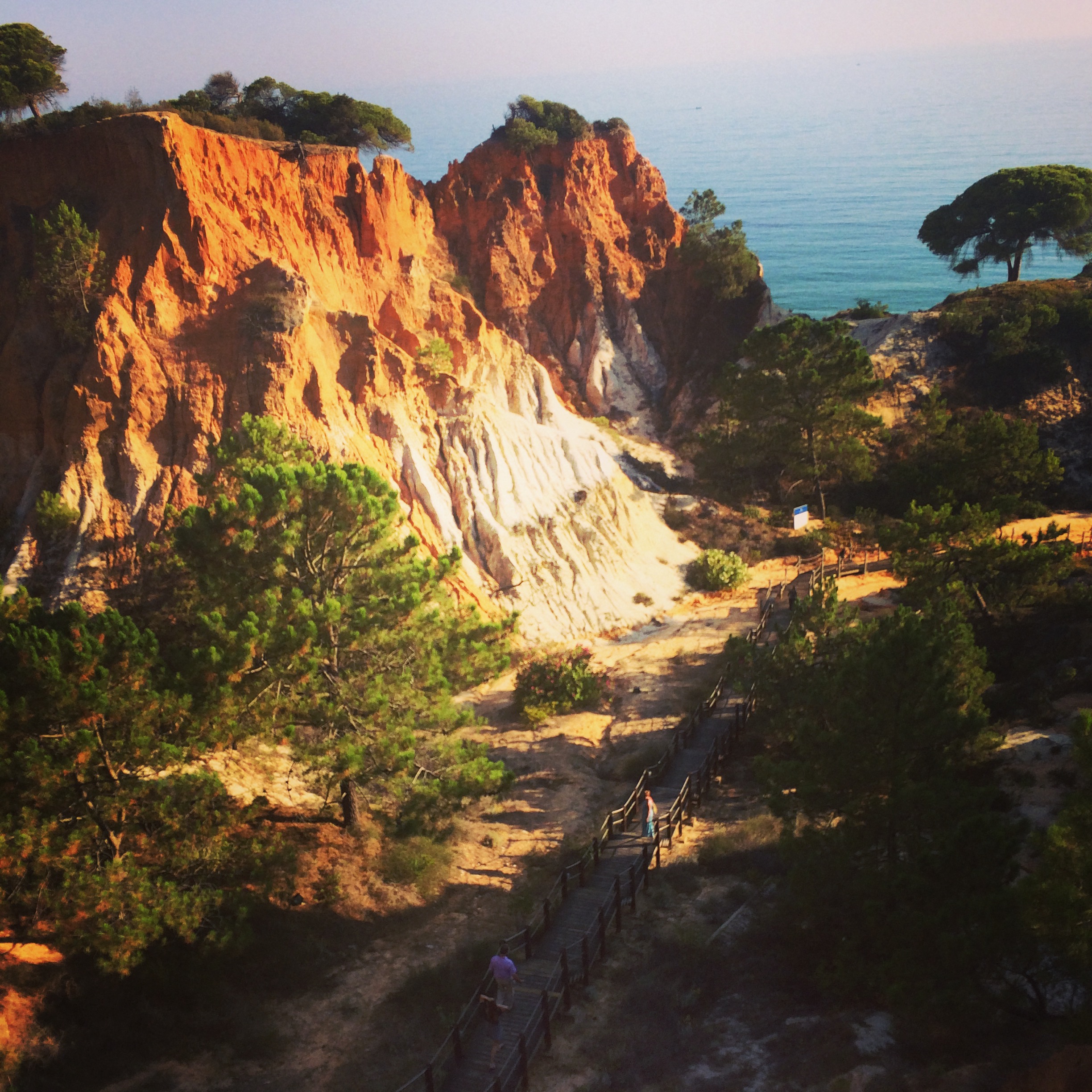 Ik zeg altijd tegen Algarve virgins, ‘begin met een heerlijke cocktail bij het Sheraton Pince Cliffs Hotel in Oyos de Agua ( zie bovenstaande foto) waar ze een heel mooi barretje boven op de klif hebben staan’. Het uitzicht vanaf daar is adembenemend en dan zie je meteen waar de Portugese kust voor staat. Na afloop zou je in één van de vele restaurantjes in het hotel kunnen eten. Terwijl jij lekker aan t borrelen spelen de kinderen in de mooie tuin daar.