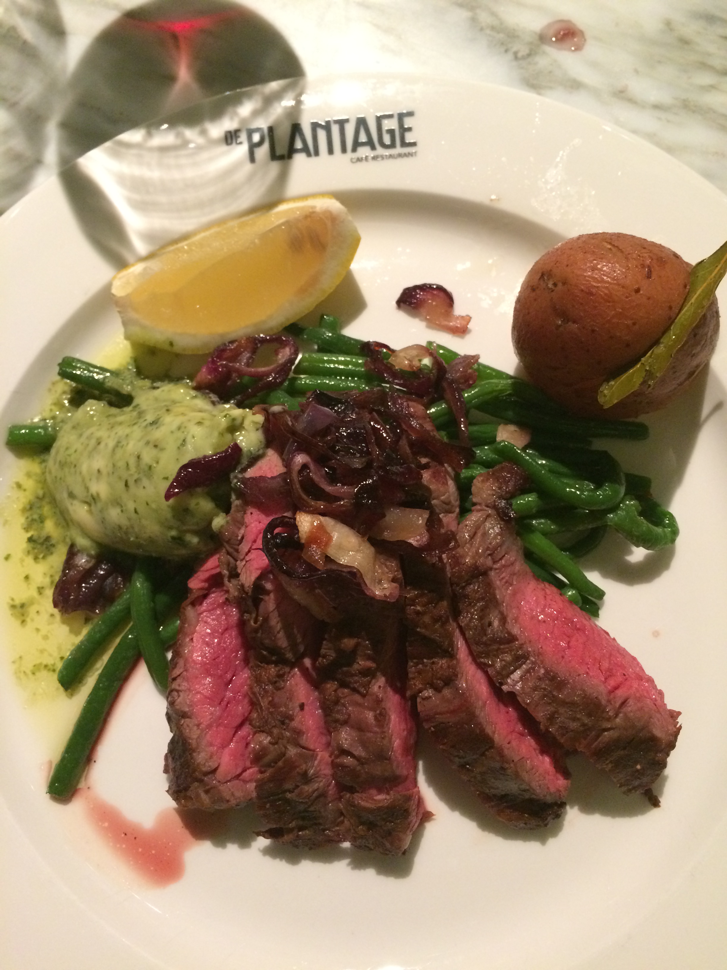We hebben er weer een pareltje bij in Amsterdam. Fietste ik vroeger nog met mijn kids naar Artis voor de aapjes, tegenwoordig fietst ik er naar toe voor Café Restaurant De Plantage. Het restaurant ligt net voor de ingang Artis. In een pand waar vroeger DWDD werd opgenomen. Je komt binnen en onmiddellijk valt de mooie entree je op met als eyecatcher de grote plant in het midden van de zaal. Er is een mooie balans gevonden tussen de historische details van dit bijzondere monument en aan de moderne inrichting van dit pand. Met prachtige hoge plafonds, en van die grote vierkante ramen in de 19e eeuwse serre met uitzicht op de dieren in Artis. Ik kreeg een beetje het Paris meets Meat packing district gevoel. Overal zie je hout, marmer en grote planten. In de zomer heeft De Plantage een groot zonnig terras waar je kunt meegenieten van brullende leeuwen of het gejoel van vele aapjes.