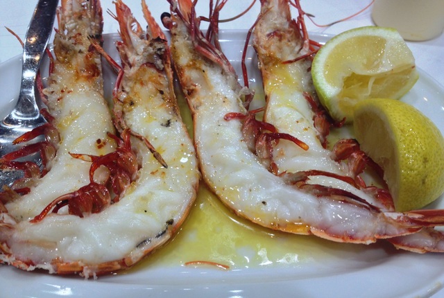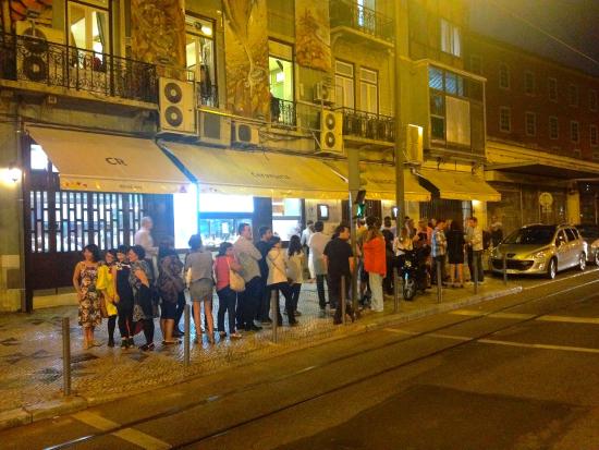 Ik begin met Lissabon’s bekendste restaurant Ramiro. Nu moet ik jullie eerlijk bekennen dat ik er nog nooit heb gegegeten. Vorig jaar reserveerde ik er braaf 2 maanden van te voren, om er tijdens de kerstvakantie te gaan eten. Toen we met de taxi aankwamen stond er al zo’n enorme lange rij te wachten. We hadden toch gereserveerd? Niets aan de hand volgens de chauffeur. Hij drukte ons door die lange rij heen naar binnen. Toen we door zo’n 60 woedende mensen in de rij vervloekt werden voelden we ons toch best schuldig. Die hele rij had nl ook gereserveerd. Met omlaag gebogen hoofden bliezen we de aftocht en zijn we maar in Flo gaan eten. Wat hebben we die avond gemist? De meest heerlijke Algarve prawns ( van die hele grote rode), rock lobster, spidercrab. Dit alles zeer simpel gekookt maar overheerlijk. Voor deze tent geldt dus een reservering en een hoop geduld.