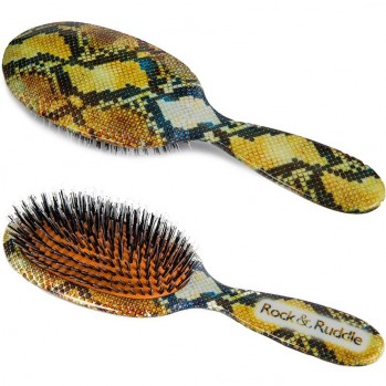 Het is heel goed om voor het slapen gaan je haar goed door te kammen. Dan gaan alle natuurlijke olie die op je hoofdhuid zitten door je hele haar verspreid worden. Daar krijg je dus glanzend haar van en de droge punten krijgen geen kans. De borstel waarmee je je haar kamt speelt wel een rol. Zo’n plastic geval van de Etos is een no go. Maar voor veel mensen is een borstel met zwijnenhaar van Mason Pearson ook niet weggelegd want je bent toch snel zo’n €130 kwijt voor een willekeurig exemplaar. Het Engelse merk Rock & Ruddle heeft nu dezelfde soort borstels ontwikkeld met natuurlijk everzwijn haar en dat scheelt net even meer dan de helft van de prijs. Ze zijn er in diverse prints en kleuren.