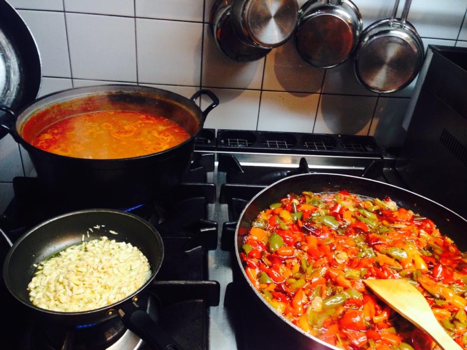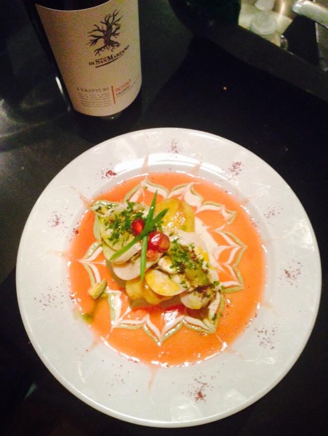 We begonnen met een romige paprika, tomatensoep met een topping van Italiaanse kaas.