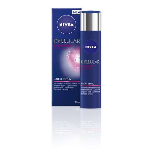 Ik zal je iets meer over de producten vertellen. De NIVEA CELLular Radiance-lijn bestaat uit drie producten die overdag te gebruiken zijn en één product voor ‘s nachts: