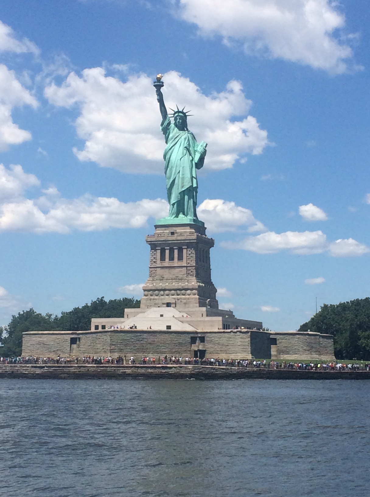 Mocht je het gevoel hebben dat je Soho met zijn vele winkelstraten en restaurantjes wel hebt gezien, ga dan eens richting Wallstreet area. Wij begonnen de ochtend met een ritje per ‘Beast’ of the “Thrill Ride ” ( Pier 16) naar Statue of Liberty. Geweldige leuke ervaring. Na een week NY was dit toch volgens de kinderen het leukst geweest. Die boot gaat ongelofelijk hard en kijk niet op als je af en toe lekker nat geplenst wordt. Ik kreeg een beetje het Disney gevoel.