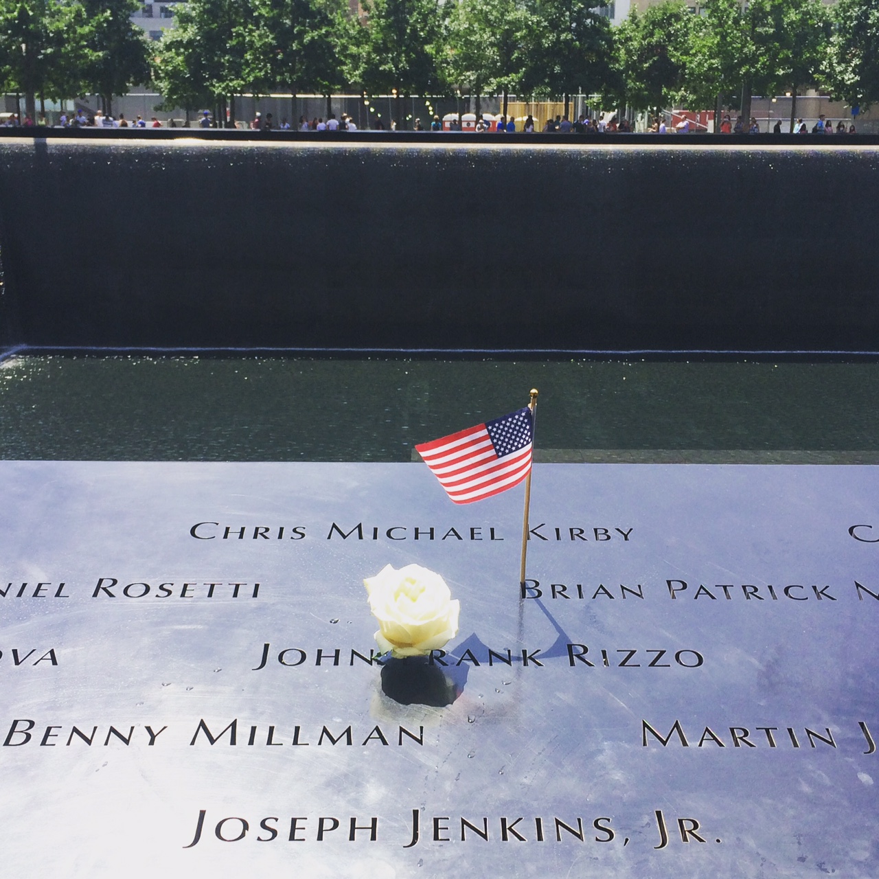 Vanuit Pier 16 liepen we naar Financial Area/ Wallstreet ( 10 min) waar we een bezoek brachten aan 9/11 Memorial. Stel je er wel even op in, vooral na zo’n boottochtje dat de sfeer daar totaal anders is. Op de plek waar de Twin Towers stonden, zie je nu gigantische fonteinen, die in de grond verdwijnen. De omheining bevat alle namen van de slachtoffers. Een witte roos en een vlaggetje wil zeggen dat het 9/11 slachtoffer die dag jarig zou zijn. Heel indrukwekkend.