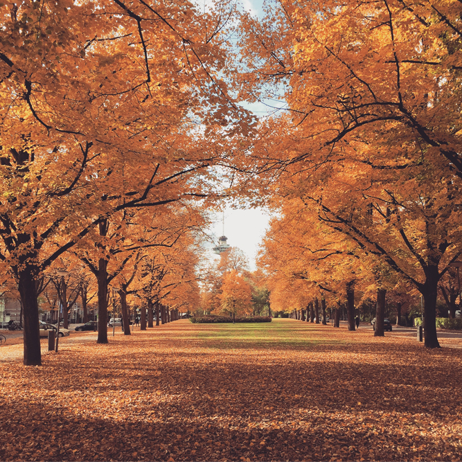 Na enkele uurtjes fun in Blijdorp reden we Rotterdam in en kwamen in een enorme verkeerschaos waar we onze auto in de Parklaan parkeerde en bij Cafe restaurant Loos een borrel namen. De kinderen amuseerde zich in deze prachtige laan en speelde er met de herfstbladeren op los ( who needs more?)