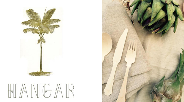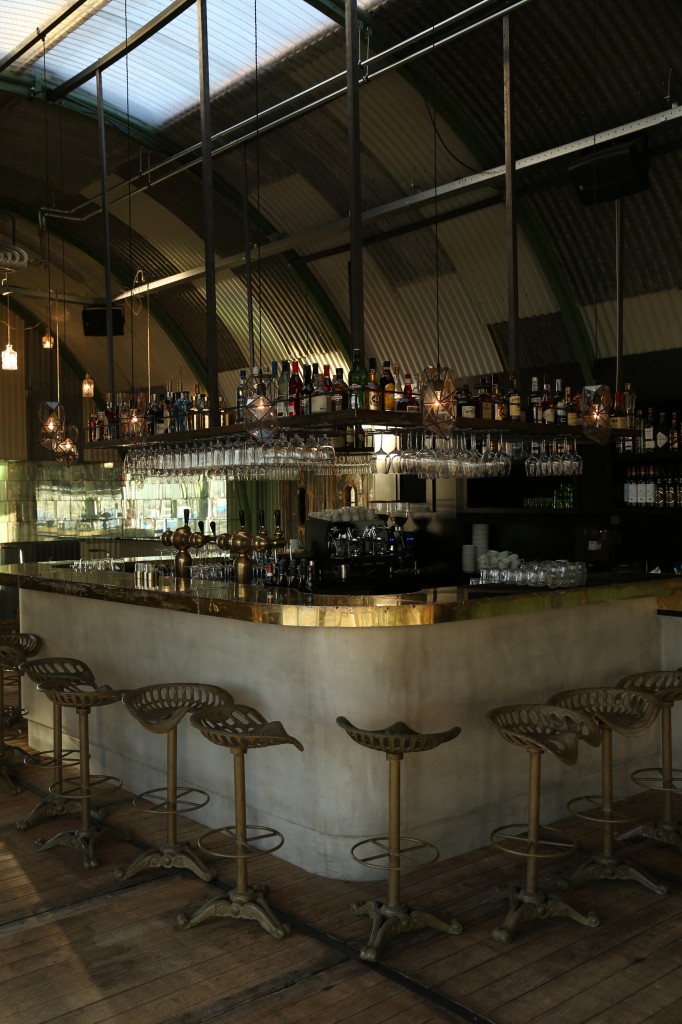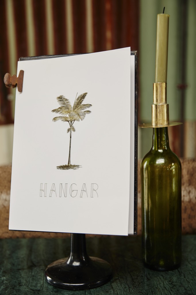Het interieur van Hangar is een concept van de prachtige styling expert Stella Willing (Scotch Collectables en ByStella). De stijl omschrijft zich het beste als “A beautiful mess” en was in aanloop naar de opening al te bewonderen via inspirerende foto’s op het instagram account @hangaramsterdam. Doel was vooral het rauwe gevoel van de loods warm, stijlvol en vooral niet te strak te maken. Hiervoor is een mix van materialen – hout, staal, messing en marmer in matching kleuren – gebruikt. Vintage kroonluchters, een spiegel- wand, oude houten vloerdelen, een messing bar blad (de meters lange bar is een ontwerp van Interieur- en conceptdesigner Robin Sluizer), groene marmeren tafels en een stamtafel van ruim 3 meter, maken dit dé plek waar je de hele dag kunt blijven zitten.