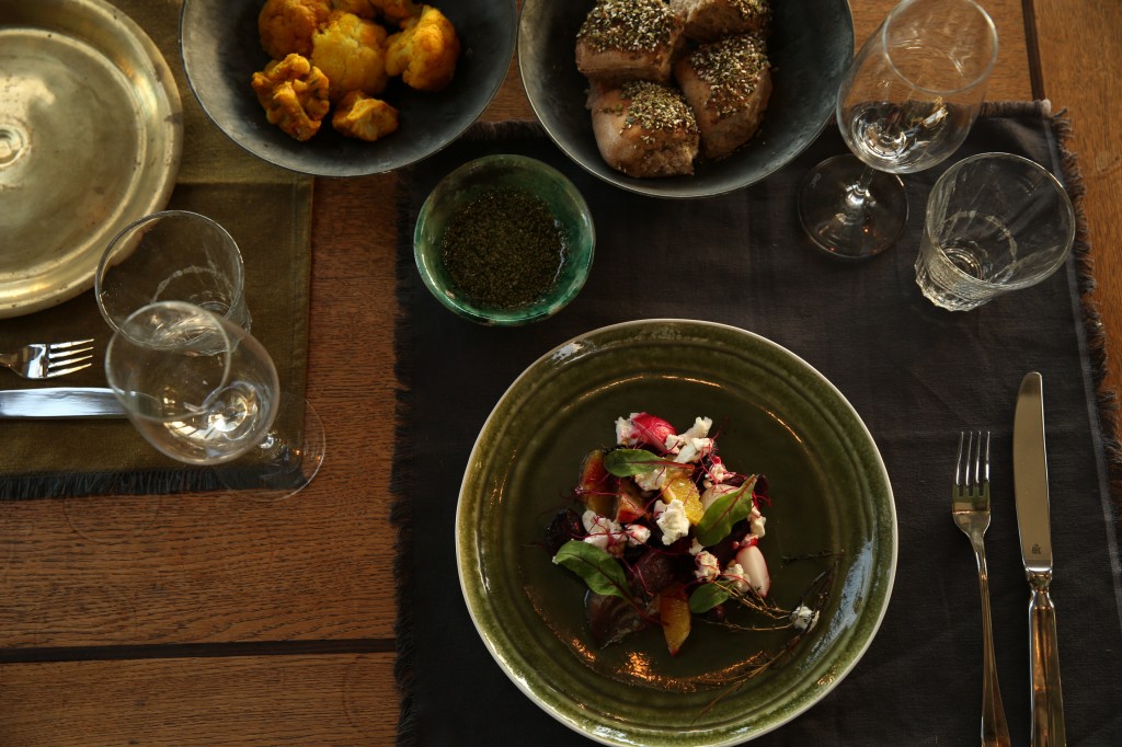 De menu kaart was klein maar overzichtelijk en alle gerechtjes even smaakvol. Vooraf deelde ik een plateau de charcurterie (€12,50) en salade van pompoen met kastanjes met een Grieks yoghurt dressing (€8,50) . Als hoofdgerecht had ik de Risotto met cantharellen, parmazaan en anijs ( €18). Echt heel erg lekker. De overige tafelgenoten aten geroosterde kip met een zoete tomaat paprika saus ( € 19,50) en oa een getrancheerde bavette steak met gebakken paddenstoelen en boerenkool (€21). Bijgerechten als de geroosterde bloemkool met kurkuma en geroosterde wortels met komijn deden net als overige gerechten zeer mediteraans aan. Iedere zes weken wordt de menukaart veranderd. Heel veel keuze is er nog niet.