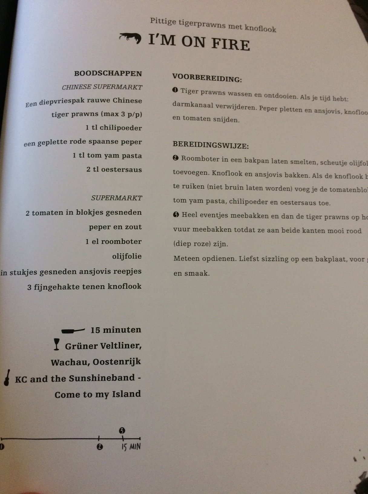 Het boek bevat wijn suggesties, maar ook handige tijdsbalkjes zodat hij de voorbereidingstijd niet pas opmerkt als ze al bijna op de stoep staat. En…een playlist aan het eind van ieder hoofdstuk, voor maximum impact. Maar ook natuurlijk boodschappenlijstjes. Alles om het hem zo makkelijk mogelijk te maken. De man heeft het tenslotte al druk genoeg.