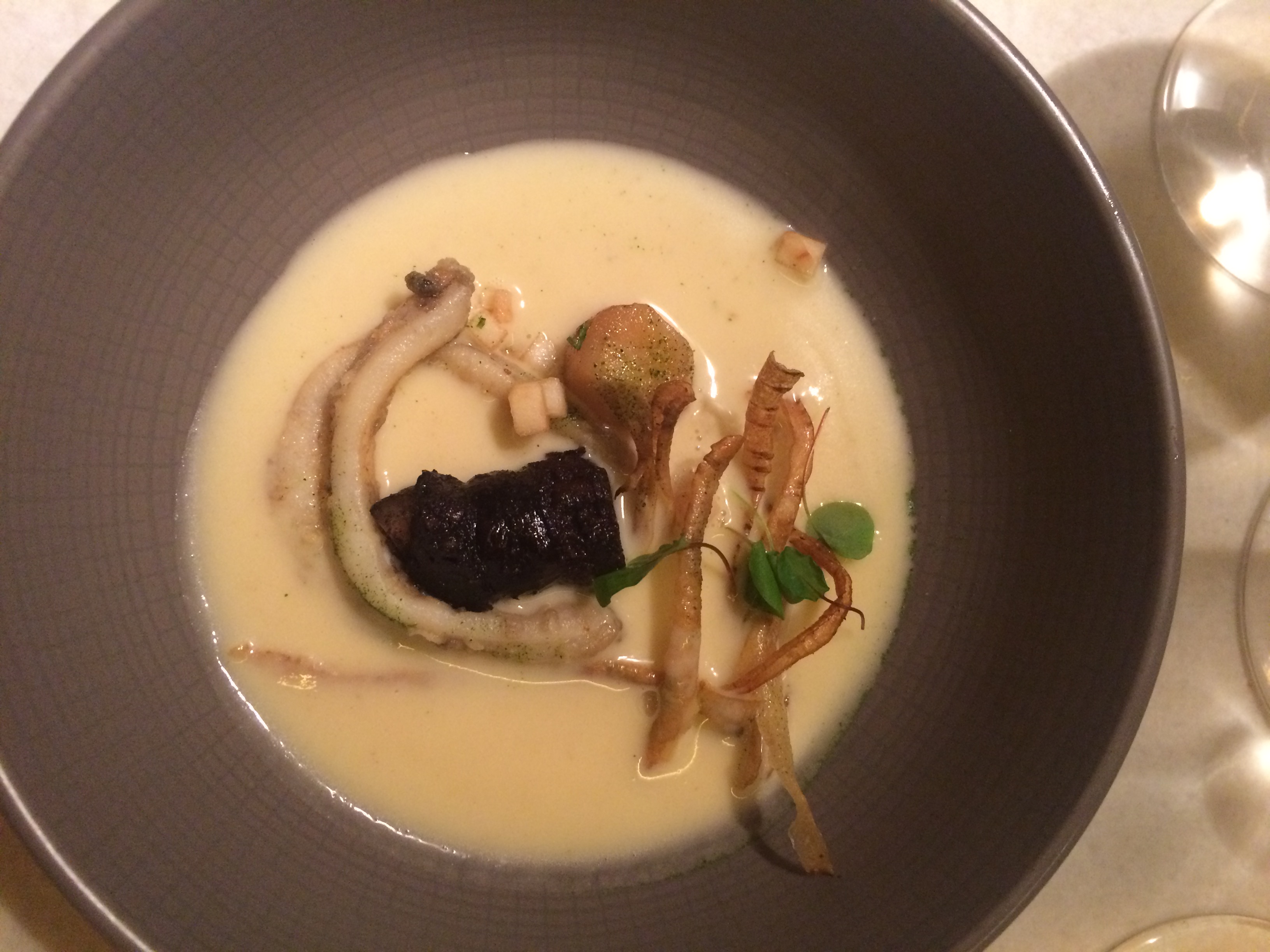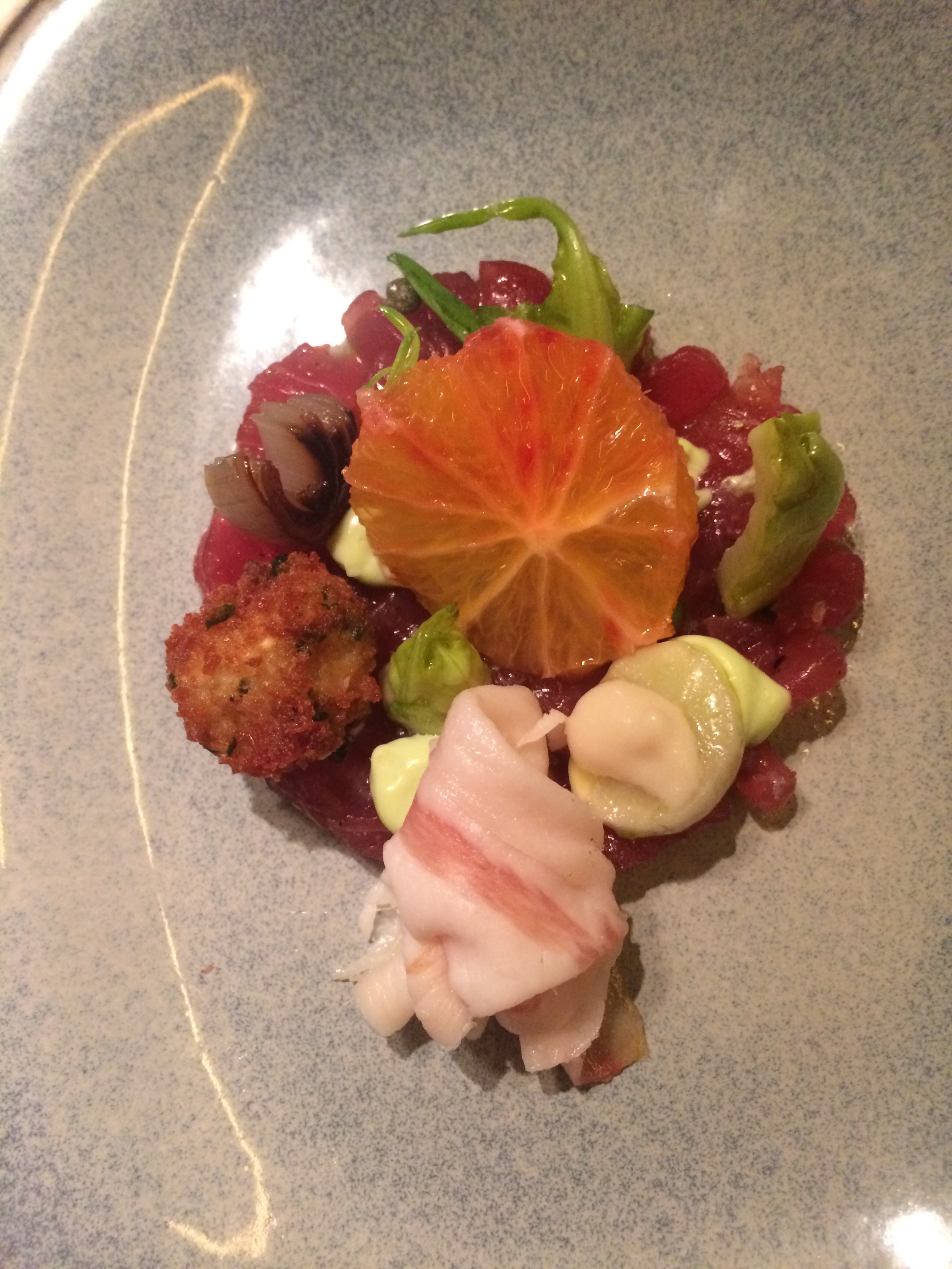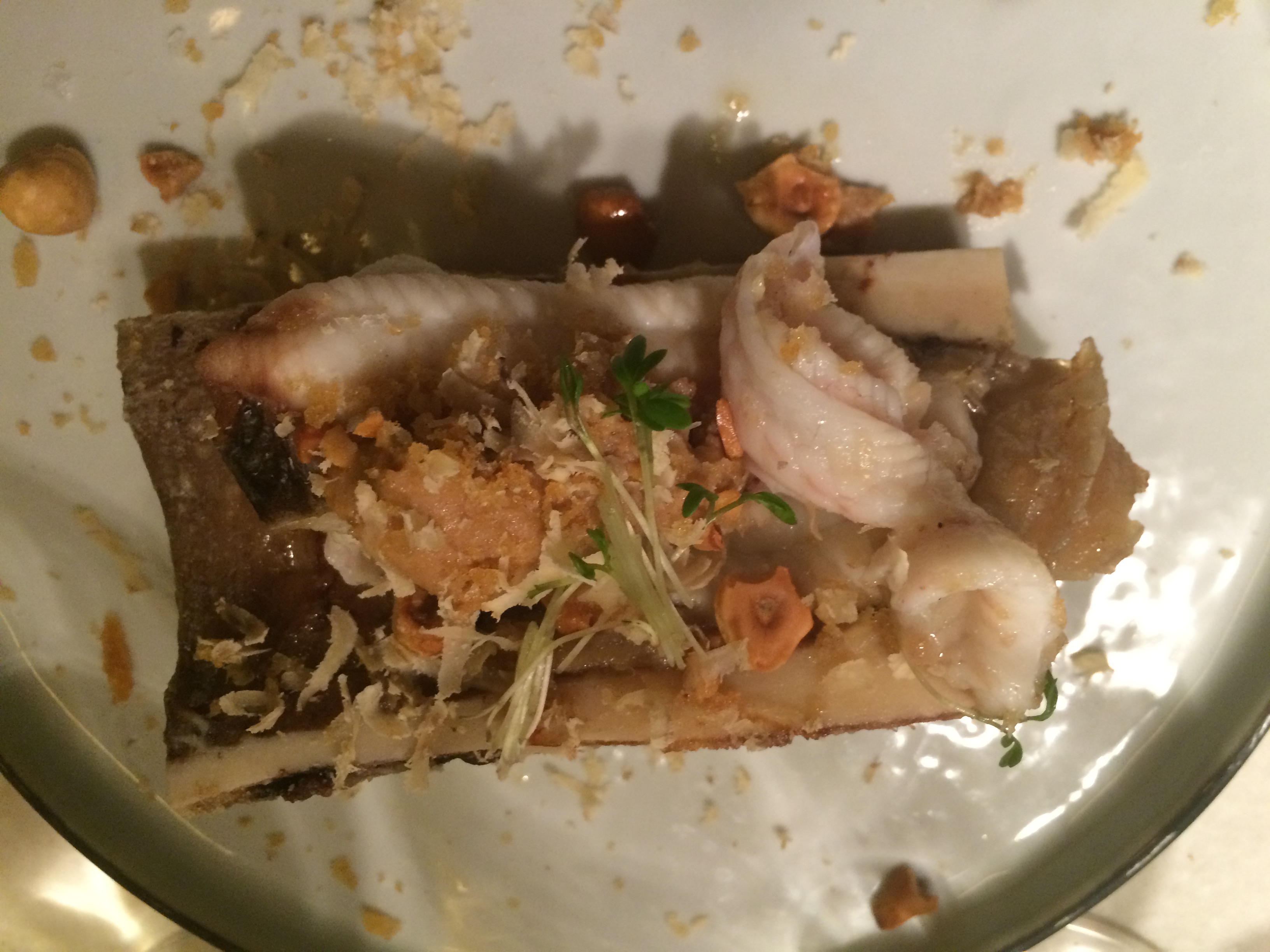 Behdad gaf me tussen de gerechten in nog een kleine rondleiding langs de keuken. Hij is goede vrienden met de eigenaars. Ik zag gehaktmolens en worstenvullers, en een bar met homemade charcuterie. Ik vind niet dat je dit restaurant een Franse bistro mag noemen, daar is de keuken iets te grof/ ruw voor. Toch worden in dit soort ogenschijnlijk eenvoudige resto’s de sterren van de hemel gekookt. Zoals bij Rijsel maar ook bij mijn favoriete restaurants als Speijkervet, de Goudfazant en restaurant As. Ze werken vaak met ingrediënten als foie gras, kreeft, krab. Lekker, lekker. Kaagman & Kortekaas wil in de keuken graag spannend en uitdagend zijn, maar aan tafel vooral een warme en vertrouwde sfeer bieden. Ik heb -als amateur- zo goed als het kan mijn gerechten proberen te fotograferen.
