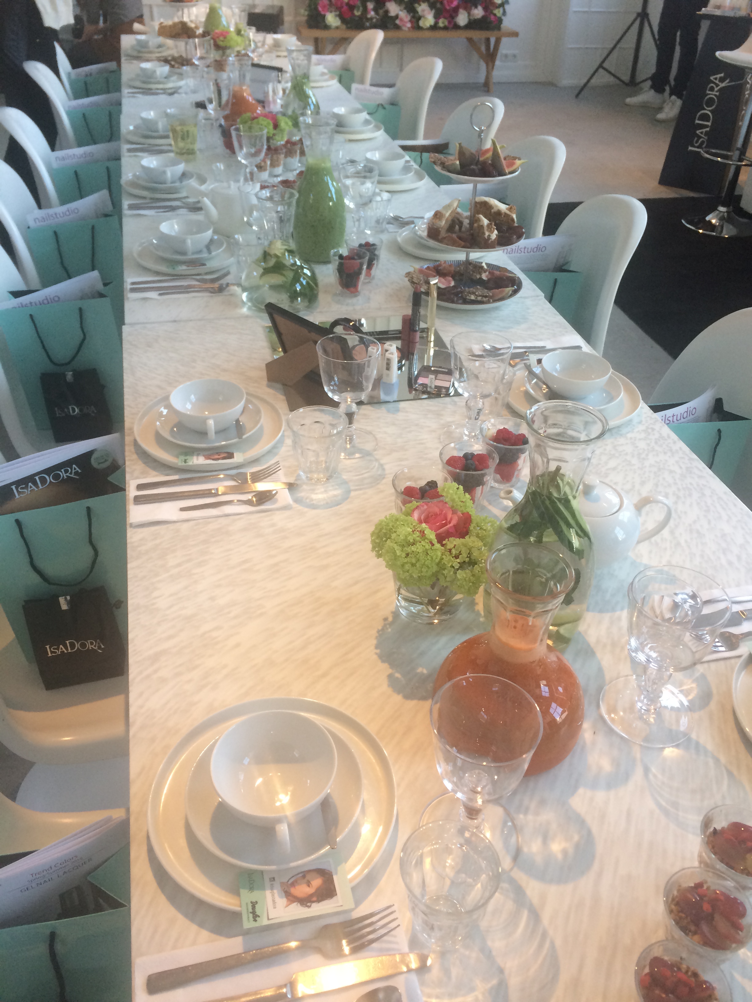 Ik ben altijd fan van persontbijtjes, je begint er zo lekker met je dag mee met vele mooie beauty producten tussen alle verse juices, vruchtjes en gember thee’tjes. Ondertussen luister je naar de PR dames die vol met passie alles over de noviteiten voor spring/summer vertellen.