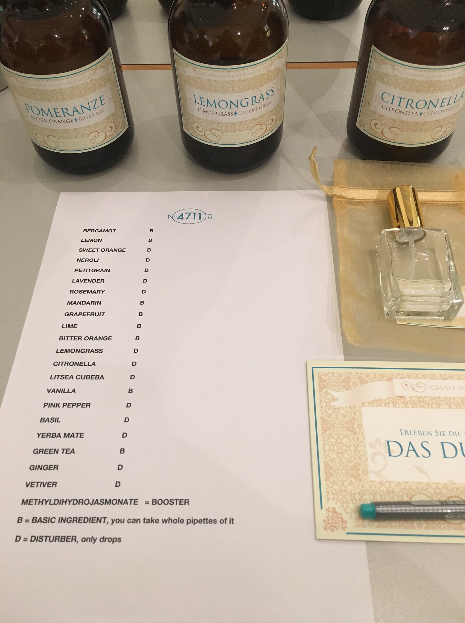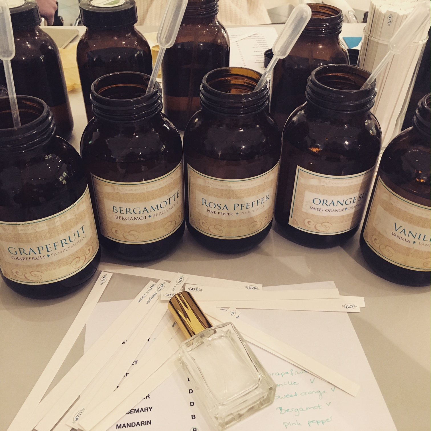 Aan het einde van de dag kregen we op de Glockengasse 4711 nog een parfum workshop waar we onze eigen geur mochten ontwikkelen. Mijn allereerste nose job.