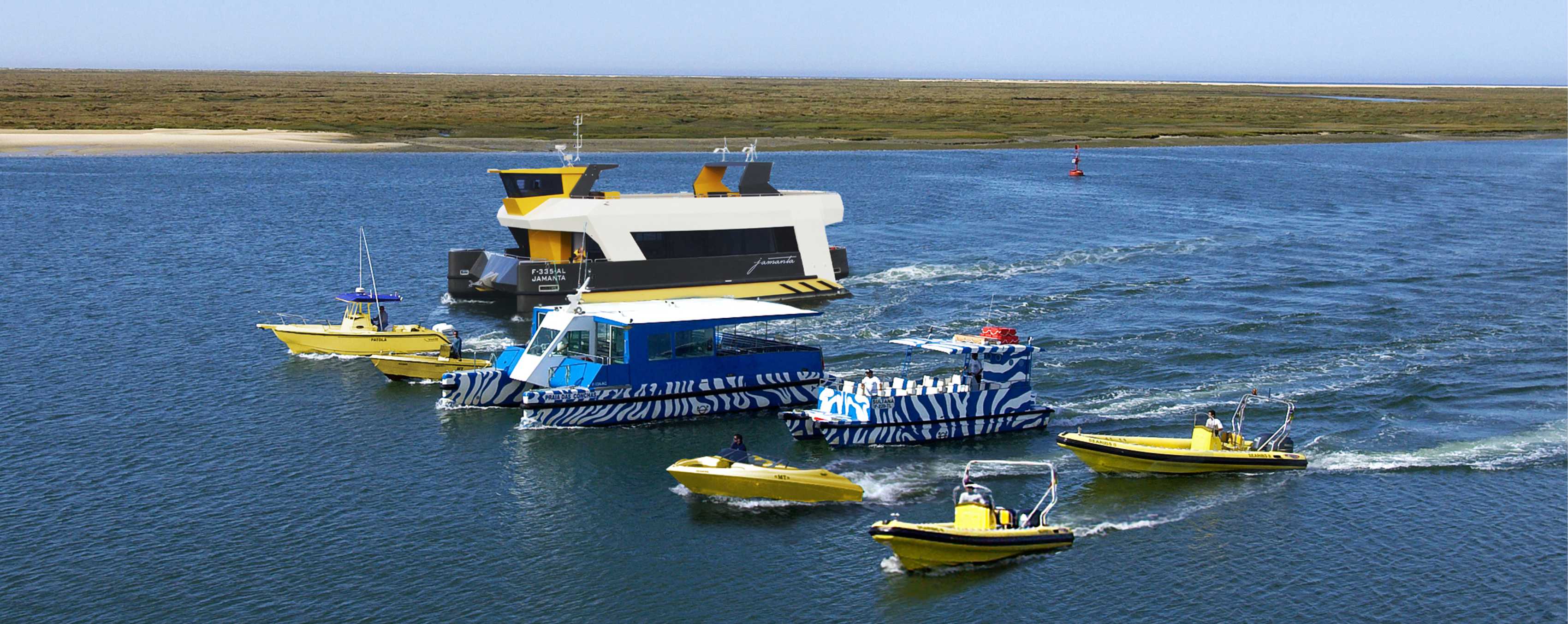 Wil je je per speedboat, catamaran of ander drijvend iets vervoeren ga dan naar deze site: www.animaris.pt ( ze rekenen €20 pp voor heen en terug naar het eiland) Hieronder hun vloot: