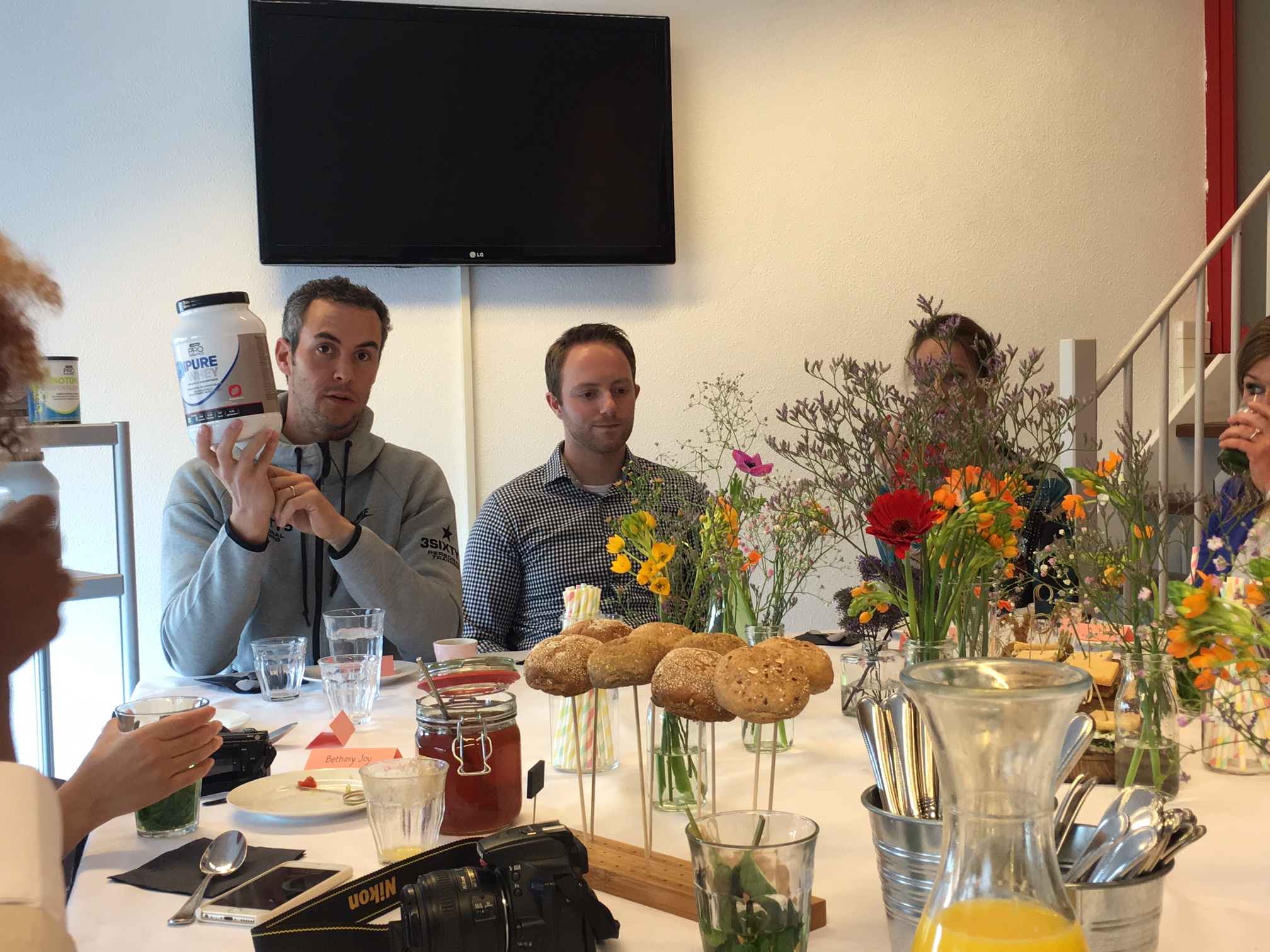 Sport instructor Guy van der Reijden legde ons tijdens het ontbijt haarfijn uit, hoe fijn de Pro Dynamics producten zijn na het sporten.