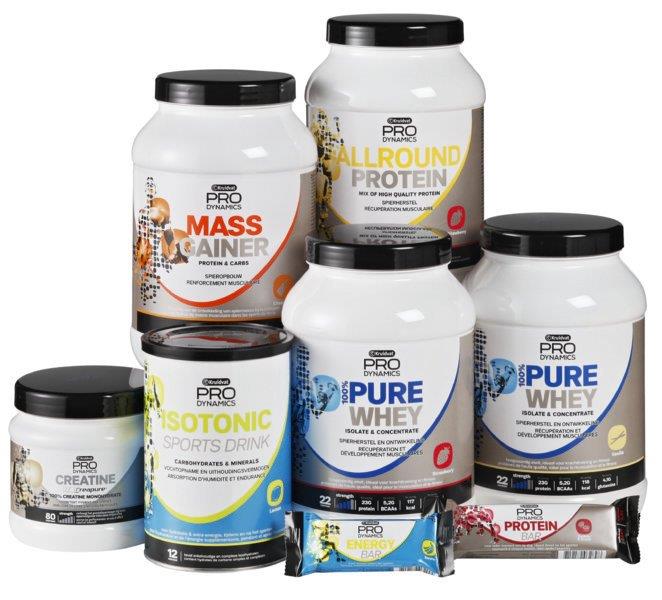 Kruidvat Pro Dynamics Isotonic Sports Drink (500 ml, lemon) Kruidvat Pro Dynamics € 3,99 - Allround Protein (700 gr, strawberry) Kruidvat Pro Dynamics 100% Pure Whey (670 gr, vanilla/strawberry) €9,99