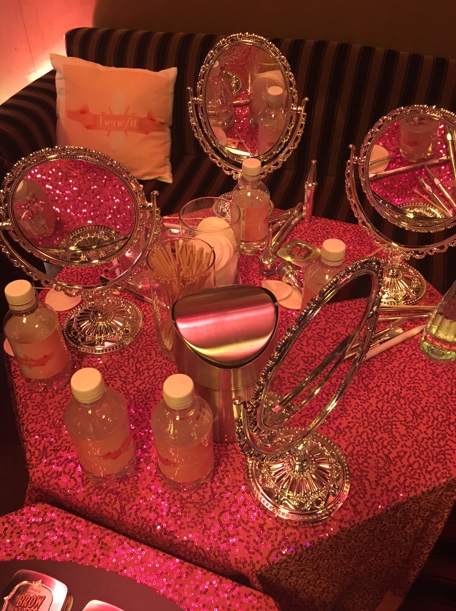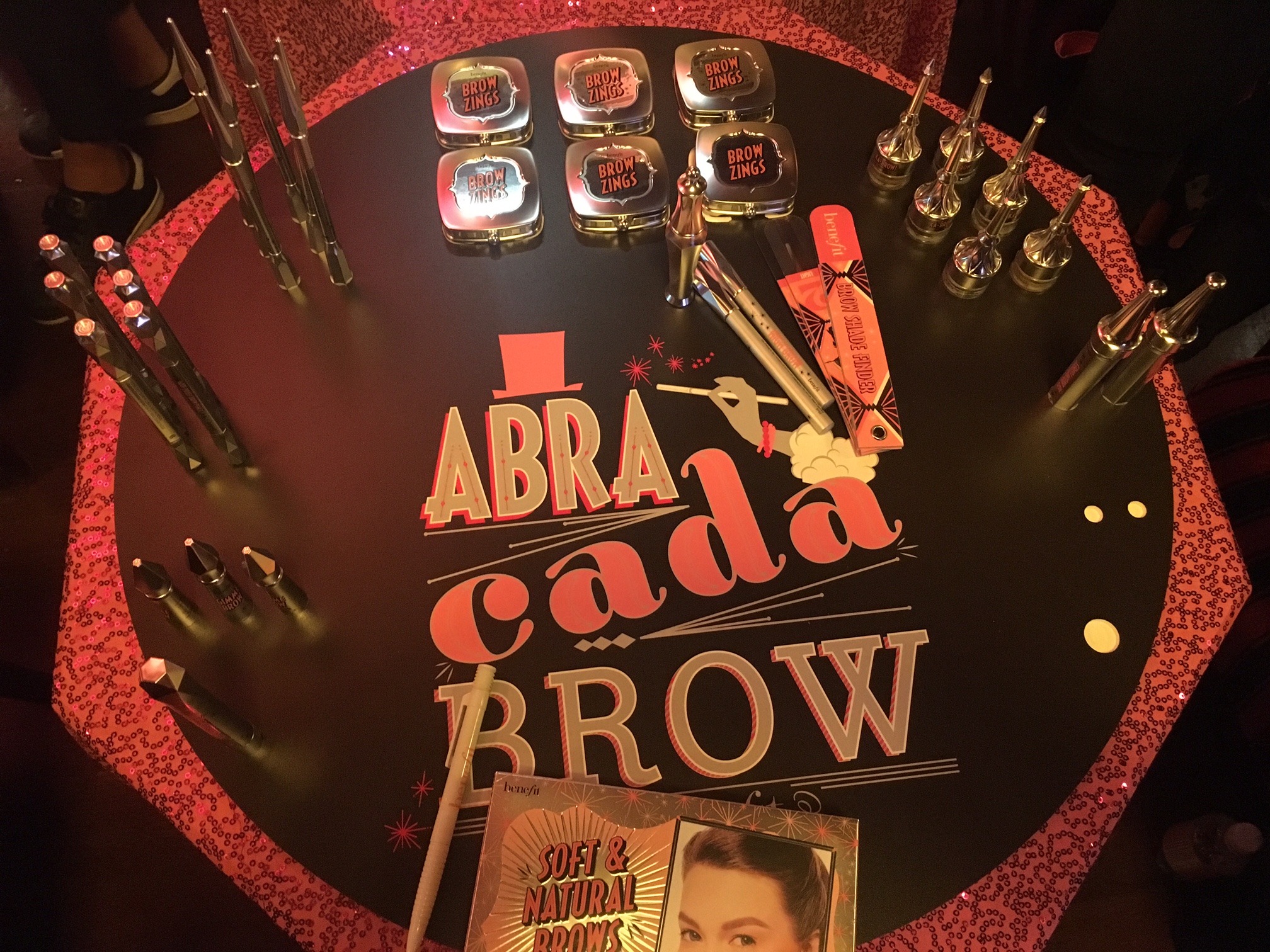 De Beauty pers werd in Tuschinsky ontvangen waar we plaats mochten nemen in de zaal. We kregen een een openings praatje van de mensen van Benefit en daarna een nogal heel erg blije goochelaar te zien. Gelukkig mochten we al snel de zaal verlaten en naar boven waar we in groepjes verdeeld werden en zelf stap voor stap aan de slag konden met deze hele fijne producten.