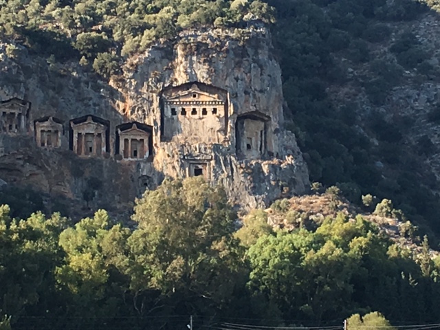 De omgeving van Dalyan is een waar paradijs waarvan er nog weinig op deze aarde te vinden zijn, een gebied van natuurlijke schoonheid en rust. We zagen prachtige oude stadsmuren en rotsgraven van de oude stad Kaunos.img_8045 img_8047 img_8075
