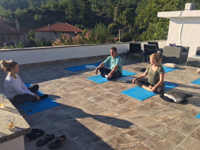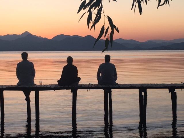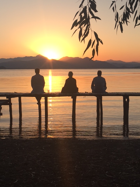 De volgende dag werden met een gong om half zeven gewekt en liepen we in (verplichte) stilte naar het prachtige meer toe, om de zon op te zien komen. Zelden heb ik zo’n mooie zonsopgang gezien als daar. Echt spectaculair. Ik bleef maar foto’s van onze vrienden groep maken. Toen de zon vol in ons gezicht scheen, liepen we het warme meer in om te zwemmen. En geloof me, je bent met je gedachten dan echt niet bezig met Erdogan, en de onveilige situatie in Turkije. Dat is daar écht de ver van je bed show. Alles is zo stil en sereen rondom dat grote meer. Ik kwam er zo ontspannen uit.