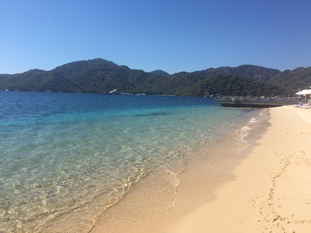 In 45 minuten ben je van het hotel bij het heerlijke strand van Gocek. Je hebt er mooie strandtenten en het beroemde restaurant de Q-Lounge. Te vergelijken met het Zumba uit Istanbul. We hebben er super lekker gegeten en na afloop tot diep in de nacht gedanst.