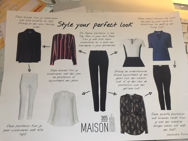 Het werkt heel eenvoudig. Via de site www.maison365.nl start je met de stijlquiz. Zo komt Danie Bles en haar team erachter wat voor een soort van style je mooi vindt. Ik had aangeven dat ik toch wel richting Bohemiam chic wilde, met een vleugje elegantie. S’avonds moet ik veel op pad en dus ook ‘gekleed’. Nadat je de stijlquiz hebt gedaan, wordt je gemailed met een datum voor een telefonisch interview van 20 minuten. Vaak vragen ze je ook nog even om een foto van jezelf van top tot teen toe te sturen zodat ze een beter beeld van je krijgen.