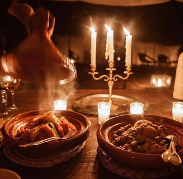 Iedere avond stond er een prachtig gedekte tafel voor ons klaar met de meest heerlijke Marokkaanse gerechten. Van een smaakvolle beef tajine tot een couscous met verschillende groentes. Ik zag geroosterde bloemkool, diverse soorten hummus en falafel voorbij komen. De twee dag hebben we het qua drank beter aangepakt. Na een day trip naar het Atlas gebergte te hebben gemaakt, stopten we na uren te hebben gereden, voor de lunch in Le Ralais de Lac. Daar leerde we de eigenaresse Nathalie kennen. Zij vond t niet kunnen dat er geen enkele druppel alcohol geschonken werd en gaf ons een grote koelbox vol met Casablanca biertjes mee en een fles rose en twee flessen witte wijn. Dat was nog eens service. Happy kwamen wij terug in ons tentenkamp met de volle koelbox, waarvan we uiteindelijk de helft daar hebben achter gelaten.
