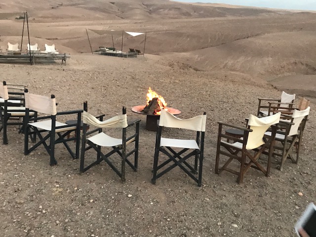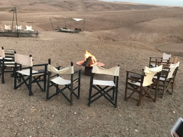 De hele avond brandde het knapperende haardvuurtje. Het was magisch. Dit in combinatie met de zon die onder gaat en de prachtige sterrenhemel, onvergetelijk. Ik denk dat een sterrenhemel nergens zo indrukwekkend is als in de woestijn.