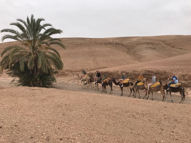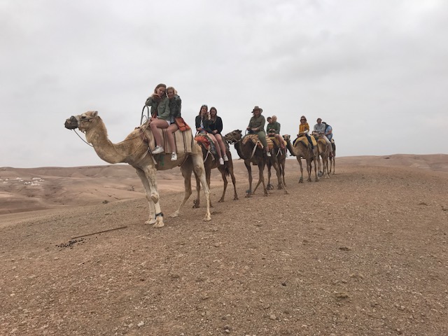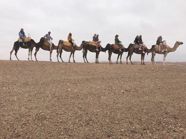 Op onze laatste ochtend zaten we allemaal voor het eerst van ons leven op een kameel. Dit was hilarisch, alleen al om iedereen te zien opstijgen en plotseling de lucht in worden getild. Arme kameel. Heerlijk een uurtje hobbelen op zijn rug. Het waren ongelofelijk lieve beesten maar met ze knuffelen ho maar. We zagen joekels van tanden..