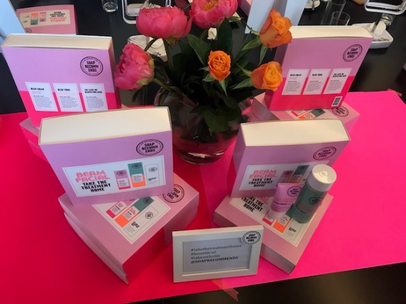 Soap heeft drie fijne producten ontwikkeld. Bestaande uit de Beam Tonic, die er voor zorgt dat je je huid opfrist en camera ready maakt ( in case..) Voor de perfecte glow, alsof je net een facial hebt gehad, gebruik je de Beam Cream. En het is echt waar, de producten geven je huid een oppepper. De structuur van de Team Cream is heel fijn, het bevat SPF en wat ik erg fijn is dat het een kleurtje heeft (zoals BB cream). Het derde product is het Leave on beautifying masker, het parade paardje van Soap Treatment store sinds jaar en dag.