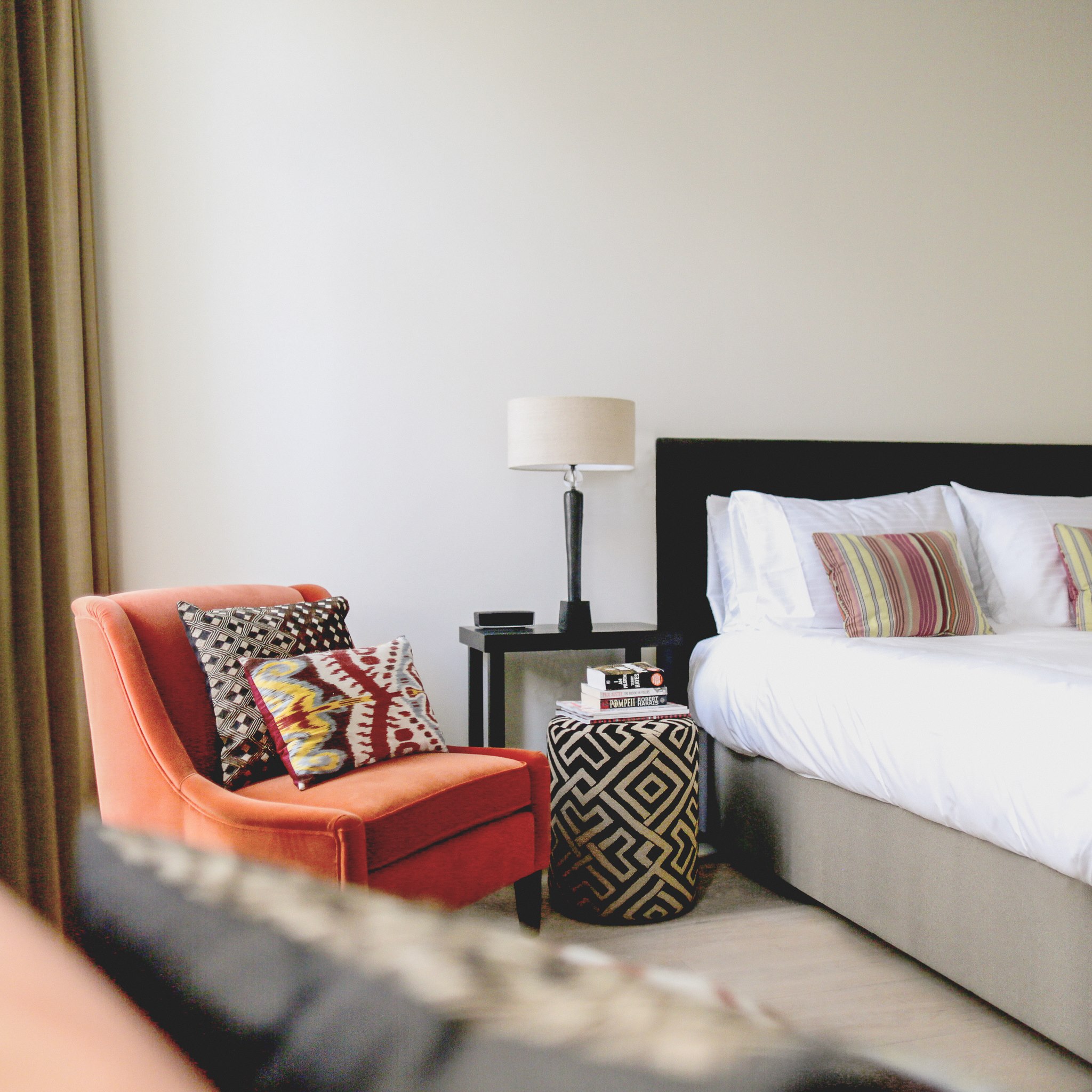 De kamers bevinden zich in het historische bankgebouw en hebben een moderne hedendaagse stijl. Ze zijn voorzien van een prachtig modern vrijstaand bad of een grote regendouche. De beauty producten zijn van Elemental Herbology. Overal is gratis wifi aanwezig. Alle kamers hebben een Nespresso apparaatje op een verdekt plekje staan.