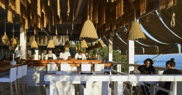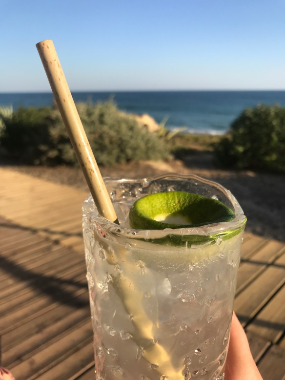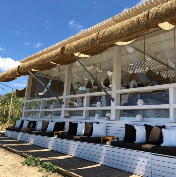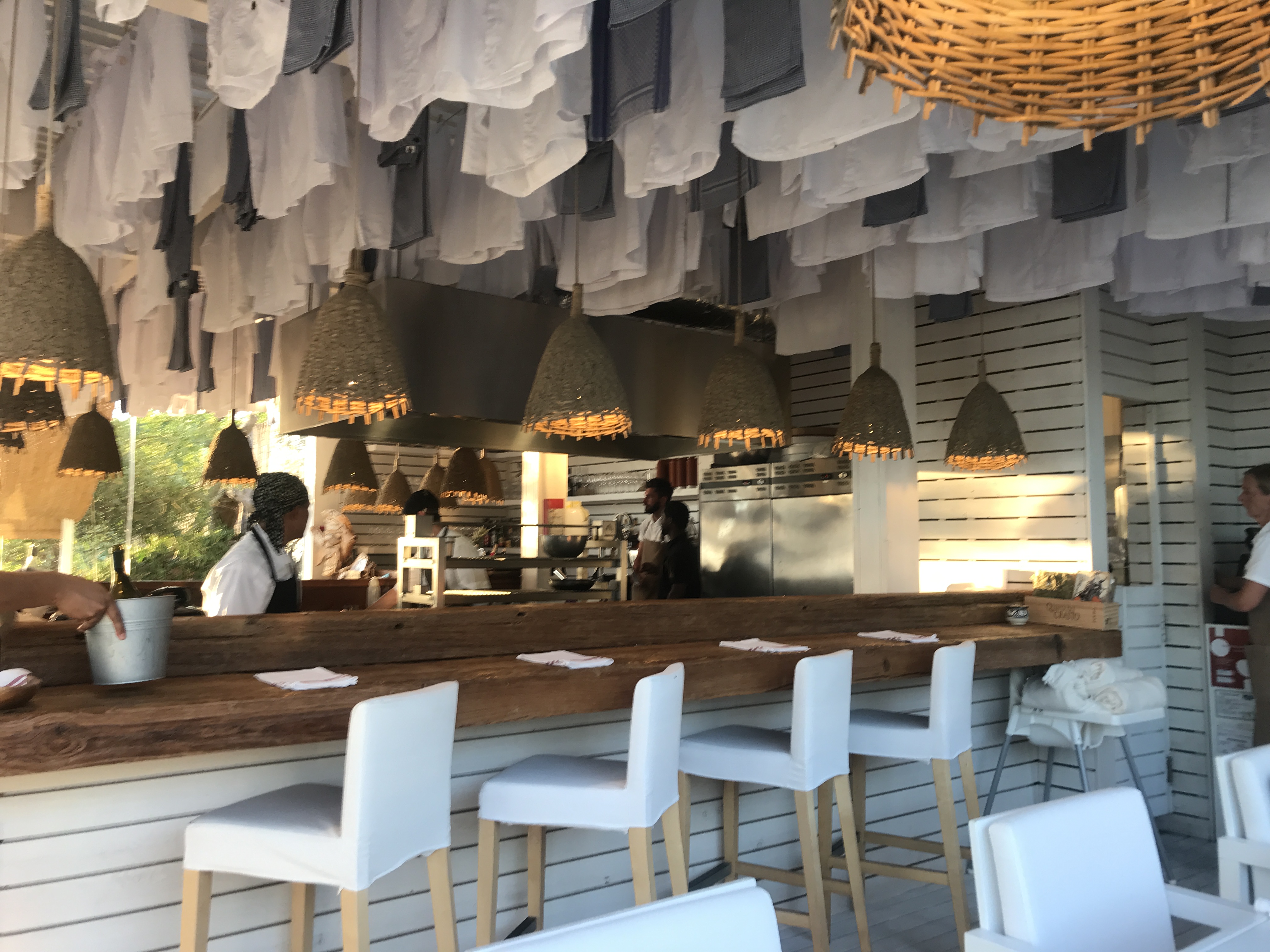 Voordat je aan tafel gaat, schenken ze je -terwijl de zon langzaam onder gaat- de meest heerlijke cocktails. My favorite de Moskou Mule ( vodka & ginger beer). Er is helaas niet veel ruimte voor veel mensen dus zorg echt dat je tijdig reserveert want spontaan aan komen waaien is daar niet aan de orde. Ze begeleiden je ook naar het strand toe want anders zijn al die geheime paadjes, trappen niet te doen. Ook aan het einde van de avond wanneer je weer op huis aan gaat, word je naar boven begeleid….